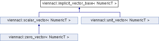 Inheritance diagram for viennacl::implicit_vector_base< NumericT >: