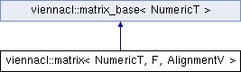 class viennacl::matrix< NumericT, F, AlignmentV >
