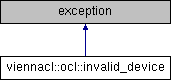 Inheritance diagram for viennacl::ocl::invalid_device: